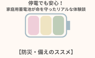 蓄電池 停電でも安心!家庭用蓄電池が命を守ったリアルな体験談【防災・備えのススメ】 2024年の夏、局地的豪雨により我が家がある地域一帯が停電に見舞われました。突然の暗闇と静寂。そして、家族の不安そうな顔。そんな中、唯一安心を与えてくれたのが、2年前に導入していた家庭用蓄電池でした。 2025.06.23 蓄電池